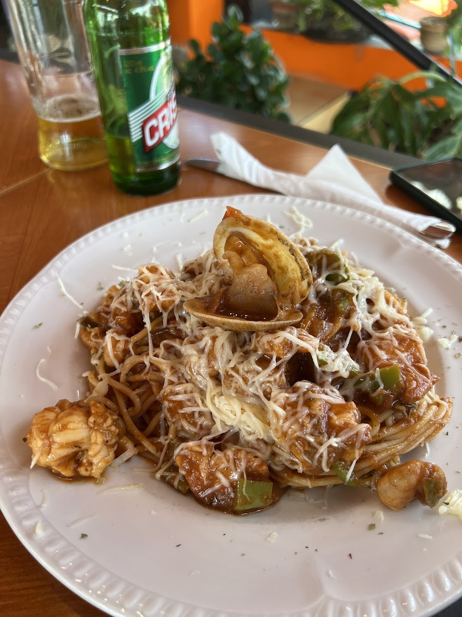 The menu here is a delightful mix of flavors, with signature dishes that leave a lasting impression. The Spaghetti Con Frutos del Mar is a standout, perfectly al dente pasta paired with fresh seafood that tastes like it came straight from the nearby coast. If you have a sweet tooth, the Tarta de Chocolate is a must-try-a rich, decadent dessert that melts in your mouth and pairs beautifully with the cafe’s great coffee. For those who prefer savory indulgence, the Cerdo Grille Con Jamón Y Queso is a crowd-pleaser, tender grilled pork layered with ham and cheese, delivering a flavor-packed experience that lingers long after the first bite.